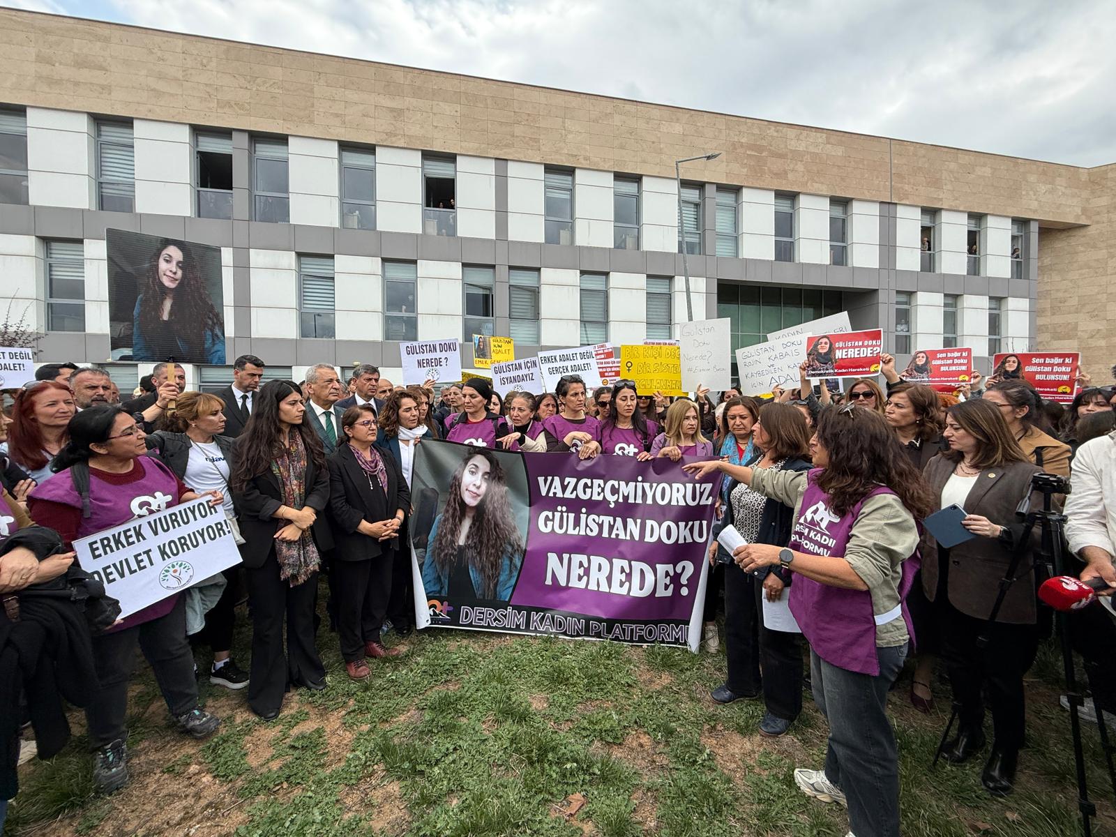 Tunceli Adliyesi önünde yapılan açıklamada, cinayet şüphelilerinin sorgusunun sürdüğü belirtilerek, Gülistan Doku dosyasında tüm sorumluların yargı önüne çıkarılması istendi.