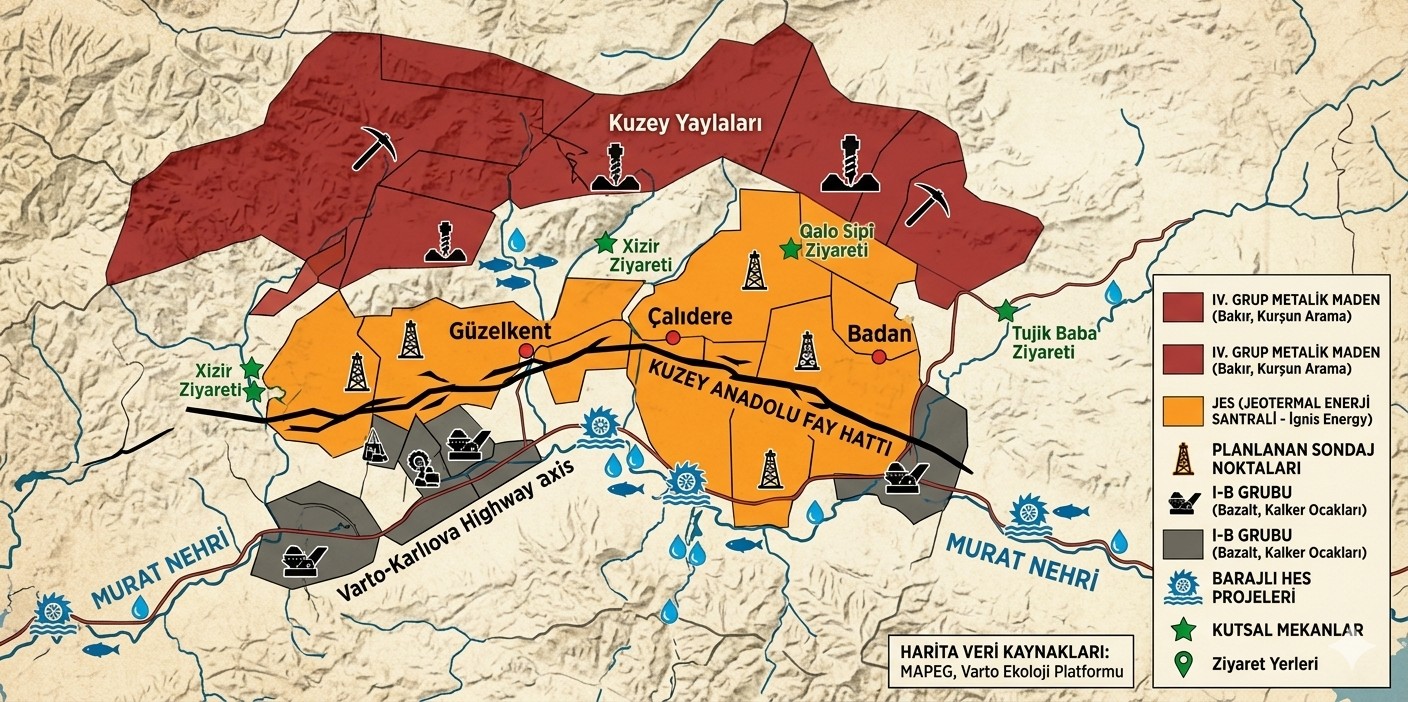 Yapay Deprem Riski: Jeotermal santrallerde yer altına yüksek basınçla su basılması (reinjection), sismik boşlukları tetikleyebilir. 1966 depreminin acılarını hala taze tutan Varto halkı için bu proje, bir enerji yatırımından ziyade bir güvenlik tehdidi.
