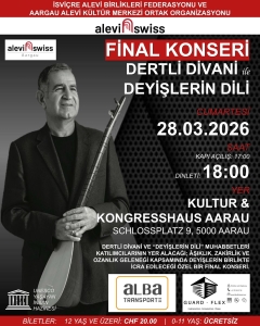 İsviçre Alevi Birlikleri Federasyonu’nun organize ettiği “Dertli Divani ile Deyişlerin Dili – Aşıklık, Zakirlik, Ozanlık Geleneği Muhabbetleri” başlıklı eğitim süreci, 28 Mart 2026 Cumartesi günü yapılacak bir dinletiyle sona eriyor.