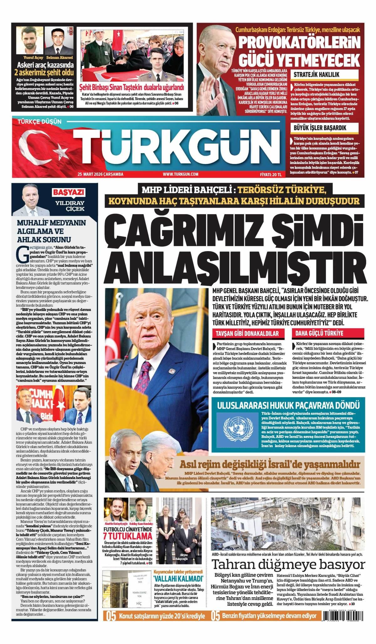 Türkgün Gazetesi 26 Mart 2026 Günü Gazete Manşetleri