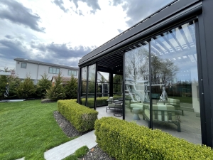 - Otomatik tavanlı kış bahçesi: Gün ışığını istediğiniz gibi kontrol edebileceğiniz esnek kullanım.